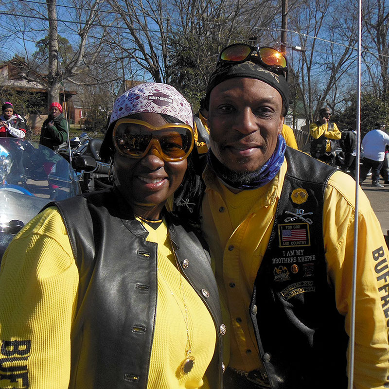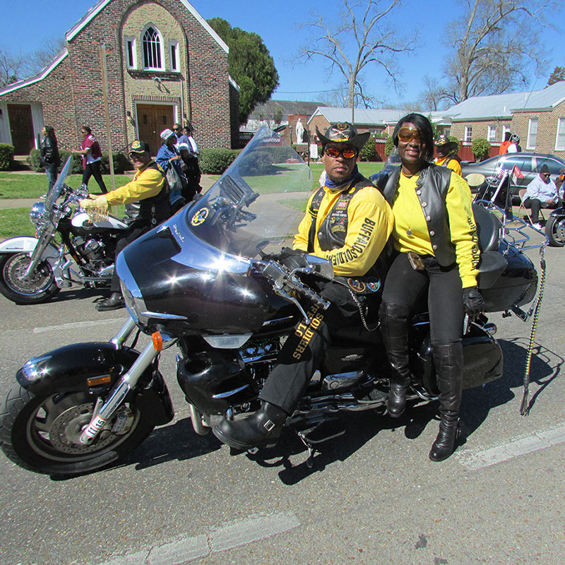 Will and Beth Sinkler, shown above, both members of Shiloh Old Site, traveled to Selma with the Buffalo Soldiers motorcycle group that had a role in the commemorative parade.