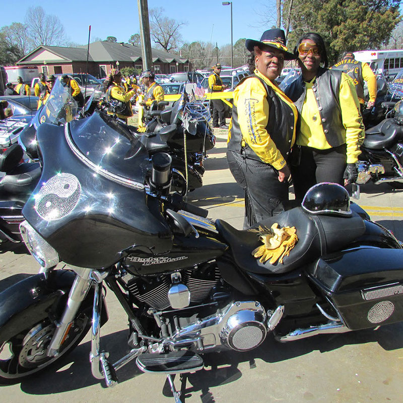 Beth Sinkler, one of Shiloh Old Site's members (facing camera at right) with other members of the Buffalo Soldiers motorcycle group in Selma, Alabama, March 2015.