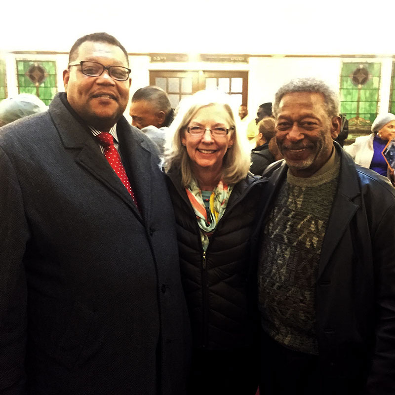 This is Pastor Aaron L. Dobynes, Sr., in Selma with two of Shiloh Old Site's newer members, who also were in attendance, Charlotte and Herman Jones. Both Pastor Dobynes' father and uncle were among the original marchers, and Pastor Dobynes served as pastor at Selma's historically significant Tabernacle Baptist Church earlier in his career.